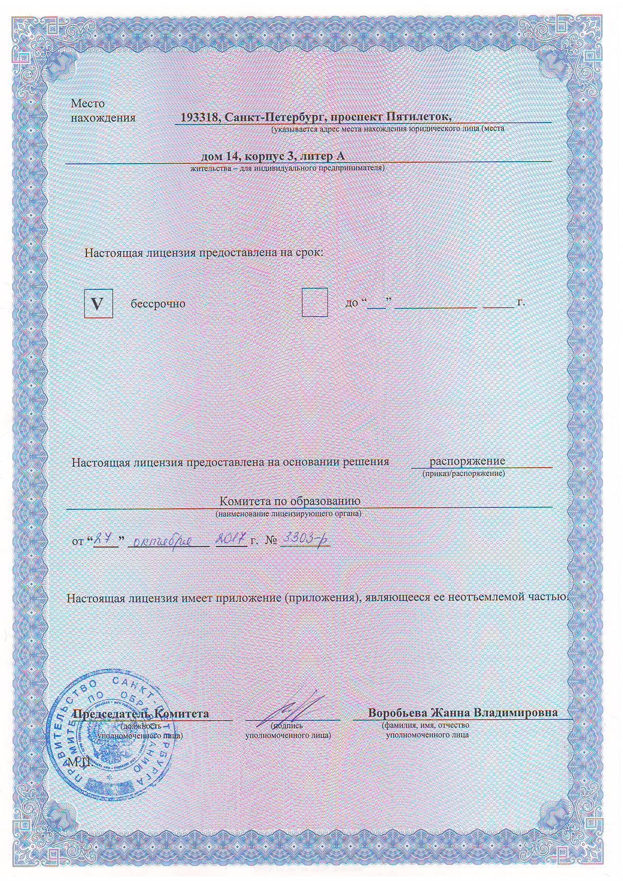 Лицензия на осуществление образовательной деятельности (с приложением)
